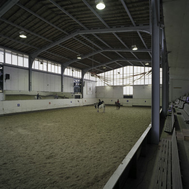 Manègegebouw naar ontwerp van W. van Tijen voor de Rotterdamsche Manège gebouwd in 1936-37 en bestaande uit een binnenmanège met tribune, kleed- en dienstruimten en een sociëteitszaal. Het gebouw is verbonden met het stallengebouw.