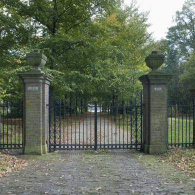 Het laat-18de-eeuwse HEK, geplaatst aan het begin van de rechte oprijlaan, is opgebouwd uit vier bakstenen pijlers op natuurstenen basement, elk afgedekt door natuurstenen geprofileerde dekplaten waarop een natuurstenen vaas in Lodewijk XVI-stijl staat. Op de middelste pijlers staan de woorden "BOSCH" en "WIJCK". Tussen de pijlers bevinden zich centraal twee draaibare, smeedijzeren vleugels en aan de linker- en rechterkant een smeedijzeren hek. Aan weerszijden van de pijlers staan drie balusters met afgeronde toppen (4 van beton en 2 van natuursteen). Tussen de balusters bevinden zich horizontale regels.