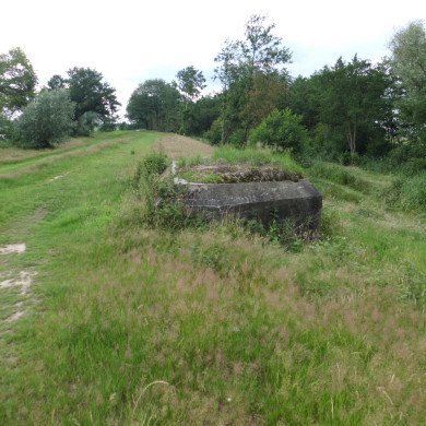 In 1939-1940 aangelegd VERDEDIGINGSWERK, bestaande uit een betonnen mitrailleurkazemat van het type S3 (SZW). De kazemat is gebouwd in het kader van de versterking van de Valleistelling en is gelegen tegen en in de voorzijde van de liniedijk.