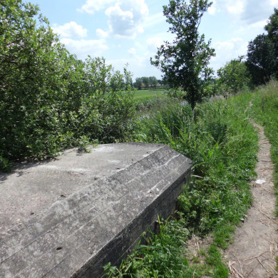 In 1939-1940 aangelegd VERDEDIGINGSWERK, bestaande uit een betonnen mitrailleurkazemat van het type S3. De kazemat is gebouwd in het kader van de versterking van de Valleistelling en is gelegen tegen de voorzijde van de liniedijk.