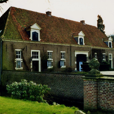 OOSTELIJK BOUWHUIS. Aan de oostzijde van het voor het hoofdhuis gelegen plein bevindt zich een bouwhuis met in het midden een inrijpoort. Deze inrijpoort wordt gedekt door een zandstenen strek waarin het jaartal 1777 is aangebracht. Aan weerszijden bevinden zich vensters met een natuurstenen tussendorpel en houten luiken. De gevel is symmetrisch ingedeeld. Het op rechthoekige grondslag gebouwde bouwhuis heeft een door Oudhollandse rode pannen gedekt schilddak met daarop drie dakkapellen met een fronton en wangstukken. Aan de achterzijde en de zijkanten van het dak zijn recent enkele dakramen geplaatst.