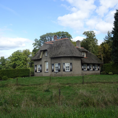 Jachtopzienerswoning met schuur/stal behorende tot de buitenplaats Nijenhuis, gelegen in het uiterste zuiden van het wandelbos.