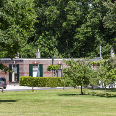 Voormalige ELEKTRICITEITSCENTRALE, thans in drie dienstwoningen verdeeld. Ten behoeve van de elektriciteitsvoorziening van het huis, de zagerij en een molen werd in 1905 aan de oprijlaan een elektriciteitscentrale gebouwd. Het gebouw op rechthoekige plattegrond is opgetrokken van rode baksteen en plat afgedekt. Horizontale geschilderde rode banden verlevendigen de gevelvlakken. Getoogde vensters en deuren met diamantkopvormige sluitstenen.