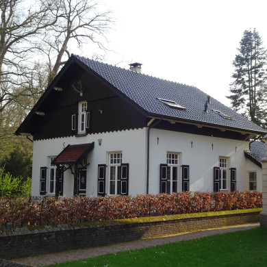 Naast het toegangshek staat de DIENSTWONING in chaletstijl uit 1916. Gebouw op rechthoekige plattegrond onder overstekend zadeldak met gesmoorde pannen. De gevels staan op een donker geschilderde plint en zijn wit gesaust. De geveltop is beschoten met verticale donker geschilderde delen. Boven het verdiepingsvenster een hertengewei. In de voorgevel de letters S en W (Schuylenburch en Wisch). Voor de centraal gelegen voordeur een afdakje met rood geglazuurde platte pannen, ondersteund door boomstammen. Vensters met bovenlichten met roedeverdeling en luiken.