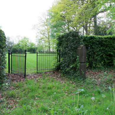 HEK bestaande uit ingangshek moestuin. Twee eenvoudige lage hekvleugels, XIXc, als ingang naar de voormalige moestuin; ronde spijlen met gietijzeren ornamenten in de vorm van pijlpunten.