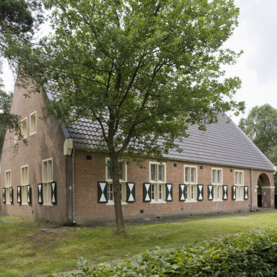 Van een paviljoensgewijze opgezet hospitaal deel uitmakende, eenlaagse middelgrote bakstenen ZIEKENBARAK met ca. 50 cm dik buitenmuurwerk en van kruipruimte voorzien, op rechthoekige plattegrond en gedekt door een met gegolfde brique / grauwe verbeterde holle (Hollandse) pannen belegd zadeldak tussen puntgevels. Op de hoek van de noordelijke langsgevel / hoofdgevel en de rechter kopgevel een portiek, met in beide gevels een halfrond gesloten toegang onder dubbele rollaag en gescheiden door een vierkante bakstenen hoekkolom, waarin simpel kroonlijstmotief en ingelegde natuursteenbrokken en buiten het normale verband geplaatste bakstenen. Portiek met rechts toegangsopening onder hanenkam en voorzien van lattendeur met in omgekeerde V-vorm geplaatste latten. Links van portiek vijf imitatie-natuurstenen (gewapend betonnen) kruisvensters onder hanenkam, met bovenin twee houten met roeden verdeelde vierruits valramen en onderin twee naar binnen bewegende houten met roeden verdeelde vierruits draairamen, en onder het kalf plaatstalen luiken, waarop groen en wit geschilderd zandlopermotief. De rechter kopgevel met schouderstukken, rollaag langs geveltop; links de portiek en rechts twee vergelijkbare vensteropeningen onder iets getoogde korte strekken en op zolderverdiepingniveau drie kleinere omlijste vensters onder hanenkam, met dubbele naar binnen bewegende houten met roeden verdeelde vierruits draairamen. Linker kopgevel vergelijkbaar. In de zuidelijke langsgevel vier imitatie-natuurstenen (gewapend betonnen) kruisvensters onder hanenkam, met bovenin twee houten met roeden verdeelde vierruits valramen en onderin twee naar binnen bewegende houten met roeden verdeelde vierruits draairamen, en onder het kalf plaatstalen luiken met groen en wit geschilderd zandlopermotief. Kruisverband. Mastgoten. Interieur ten dele gemoderniseerd. Trap later omtimmerd, maar nog met voor de bouwtijd kenmerkende delen, zoals balustrade en lambrisering. Gewapend betonnen zoldervloer, waarop vermoedelijk later aan de lange zijden met betonblokken ca. twee meter hoge wanden zijn aangebracht. Kap met houten sporen en spanten.