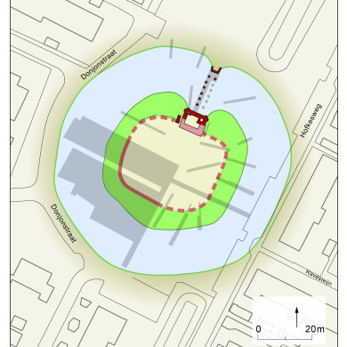 BOERDERIJ (XIX A) tegenover de kerk. Woonhuis van vijf vakken met hoog zadeldak, aan de voorzijde afgewolfd. Gevel met kroonlijst en ingezwenkte zijkanten. Deuromlijsting met pilasters en hoofdgestel. Gepleisterde gevels. Schuur achter het woongedeelte aan de noordzijde vernieuwd.
