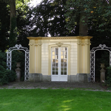 Ten zuiden van het huis in het begin van de 20ste eeuw geplaatst 18de-eeuws TUINHUIS afkomstig uit Amsterdam. Het gebouwtje bestaat uit één bouwlaag en is deels uit hout, deels uit steen opgetrokken. Aan twee zijden is een venster geplaatst en een deur aan de voorzijde. Op de hoeken aan de voorzijde zijn overhoeks twee ionische pilasters aangebracht, waartussen ruimte voor een voetstuk voor een vaas o.i.d. is opengelaten. Aan weerszijden van het huisje staat smeedijzeren treillage in de vorm van een poortje opgesteld.