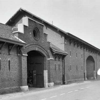 Poortgebouw. Links aan de Spekstraat de entree door een segmentvormige doorgang tussen steunberen en onder een getrapte Vlaamse gevel met hardstenen afdekking. Het éénlaagse gebouw onder een met pannen gedekt zadeldak voorzien van een overstek heeft links van de doorgang vier ontluchtingssleuven en rechts twee.