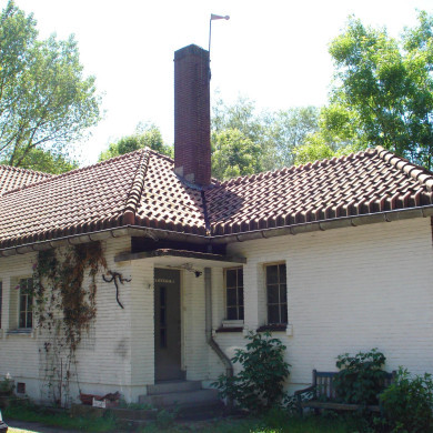 Voormalig ZUSTERHUIS deel uitmakend van het uit 1930-1933 daterende complex Quarantaine-inrichting in zakelijk-expressionistische trant en gesitueerd aan de noordelijke rand van het terrein, oostelijk van de opzichterswoning.