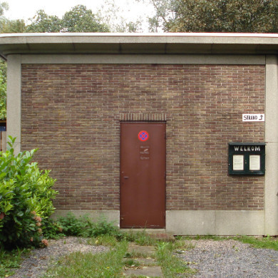 A. Ontsmettingsgebouw B. Beambtenwoning C. Keukengebouw D. Zusterhuis E. Isoleerbarak F. Ziekenbarak G. Lijkenhuis H. Portiersloge I. Chloorhuisje J. Aanleg met bijbehorende ligusterhagen en padenstelsel