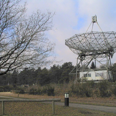 RADIOTELESCOOP MET BEDIENINGSHUIS, gesitueerd ten zuidoosten van Dwingeloo, op de grens van bos en heide, aan de rand van het Nationaal Park Dwingelerveld. Vanwege de storingsgevoeligheid van de apparatuur is het maximaal 30 meter hoge object op een perifere locatie gebouwd om de kans op externe (elektromagnetische) trillingen tot het minimum te beperken. De bouw begon in 1954 (najaar), medio 1955 was het constructiewerk gereed, tevens de fase waarin de reflector of spiegel op de toren is geplaatst. De installatie van het machinewerk en van de elektrische apparatuur was in april 1956 gereed. Op 17 april 1956 is de radiotelescoop met bedieningshuis (destijds de grootste radiotelexcoop ter wereld) officieel in werking gesteld door H.K.H. Koningin Juliana. Het object bevat o.a. een grote parabolische reflector (vaak "spiegel" genoemd) en een gevoelige, ruisarme radio-ontvanger, waarmee radiogolven uit het heelal kunnen worden opgevangen en zon en melkwegstelsel continu en systematisch konden worden waargenomen. De Leidse hoogleraar Jan Hendrik Oort stond aan de basis van het onderzoek naar de structuur van het melkwegstelsel en ontwikkelde plannen voor het meten van de radiostraling van de melkweg. Oorts ontdekkingen leidden tot de ontwikkeling van een hoogwaardig technisch- wetenschappelijk apparaat voor het doen van astronomische waarnemingen en verwant radiosterrenkundig onderzoek. Ingenieur C.A. (Lex) Muller, medewerker van professor Oort, leverde het ontwerp van de radiotelescoop en begeleidde samen met B.G. (Ben) Hooghoudt de bouwwerkzaamheden. De uitvoering was sinds 1954 in handen van Werkspoor. Andere, eveneens Nederlandse, bij de bouw betrokken bedrijven en instellingen waren Heemaf N.V. in Hengelo (ontwerp en uitvoering van de elektrische installatie), Ingenieurs- en architectenbureau Langhout in Amsterdam (ontwerp betonfundering), Amsterdamse Ballast Mij N.V. in Amsterdam (uitvoerend werk betonfundering), Metaalbedrijf Rademakers N.V. te Rotterdam (ontwerp en uitvoering coördinatentransformator, de "piloot"), opdrachtgeefster de Stichting Radiostraling van Zon en Melkweg i.s.m. Laboratorium voor Electronische Ontwikkelingen van de Koninklijke Marine te Oegstgeest, Natuurkundig Laboratorium van Philips te Eindhoven en het Dr. Neherlaboratorium van de PTT te Leidschendam (ontwerp en uitvoering servosturing). Het object weegt 120 ton en vervult sedert 1988 niet langer zijn oorspronkelijke wetenschappelijke functie. De huurder van de radiotelescoop, Stichting CAMRAS, beoogt hergebruik door amateurastronomen en zendamateurs en stimuleert de educatieve functie van het object.
