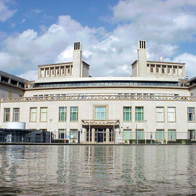 KANTOORGEBOUW met VIJVERPARTIJ (1951-1953), gebouwd voor de verzekeringsbank de Nieuwe Nederlandsche-Nieuwe Eerste Nederlandsche (EN-NEN), ontworpen door A. van der Steur met medewerking van W.A.C. Herman de Groot (die de betonconstructie voor het werk verzorgde), en uitgevoerd door architectenbureau Ir. J.P. van Bruggen, G. Drexhage (B.N.A.), Ir. J.J. Sterkenburg en A. Bodon (B.N.A). Het uit 1909 daterende hoofdkantoor van de 'Nieuwe Nederlandsche' was gedurende de Tweede Wereldoorlog door een bombardement verloren gegaan. Het nieuwe kantoorgebouw voor de verzekeringsbank werd gebouwd in de gedurende de oorlogsjaren door de bezetter ontruimde en als Sperrgebiet ingerichte weststrook van Den Haag. Het pand maakt onderdeel uit van het door W.M. Dudok ontworpen wederopbouwplan, al was op de betreffende locatie een woongebouw gepland. De thans ellipsvormige vijverpartij had oorspronkelijk een andere vorm: deze volgde grotendeels de begrenzingen van het voorterrein, gevormd door de voorgevel van het gebouw aan de noordwestelijke zijde en de grens van het bouwterrein aan de zuidoostelijke zijde. De toevoeging van vijverpartijen is iets wat Van der Steur vaker deed, mede om het monumentale karakter van zijn gebouwen te vergroten. In de vijver bevonden zich twee bronzen BEELDEN die zijn verplaatst naar de groenstrook ten oosten van het pand. In 2011 zijn de beelden nogmaals verplaatst naar het plantsoen op de hoek President Kennedylaan-Stadhoudersplantsoen. Het kantoorgebouw voor de EN-NEN is rijk afgewerkt met verschillende soorten natuursteen en omvat diverse monumentale kunstwerken. In de jaren zeventig en tachtig van de twintigste eeuw is het gebouw op passende wijze met één verdieping opgehoogd door architect Ploeger van DSBV. Thans (2009) is het International Criminal Tribunal for the former Yugoslavia (ICTY) in het gebouw gehuisvest. Daartoe zijn onder andere drie rechtszalen in het gebouw ondergebracht.