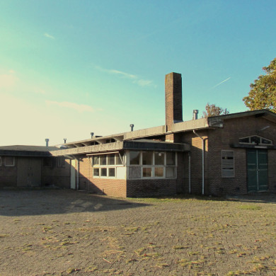 De gevels van het HOOFDVOLUME worden afgesloten door een flauw hellend zadeldak met groot overstek. De gevelopeningen zijn regelmatig verdeeld met in de voorgevel, aan weerszijden van de entree, elf boven- en onderramen van elkaar gescheiden door een doorgetrokken betonnen latei. Uiterlijk links en rechts een hooggeplaatst raam waaronder een houten bloembak. In de linker - en rechter zijgevel bevindt zich een centraal geplaatste houten roldeur waarboven een bovenlicht. Tegen de achtergevel bevinden zich drie aparte bouwvolumes. Het interieur is grotendeels in oorspronkelijke staat bewaard gebleven zowel wat betreft de structuur als de afwerking zoals vloeren, deuren en kasten.