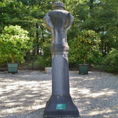 GEDENKMONUMENT behorende tot de historische buitenplaats Soestdijk. Het ten oosten van de oranjerie, ten noordoosten van het paleis gelegen gedenkmonument ter nagedachtenis aan koningin Emma. Het monument is in 1898 geschonken door het personeel en vervaardigd in Art Nouveau stijl. Het bestaat uit een hardstenen sokkel met daarop een marmeren vaas. De sokkel heeft een vierkante basis en bewerkte achtzijde bovenzijde, bestaande uit een guttaerand met erboven een fries van eikenbladen. De gestileerde vaas heeft vier oren en een kroon. Het opschrift op een zijde van de sokkel luidt: 'dankbare herinnering aan Hare Majesteit Emma koningin weduwe Regentes van het koninkrijk 1890-1898'. Aan de andere zijde van de sokkel staat: 'De leden der Koninklijke hofhouding van 23 november 1890 tot 31 augustus 1898. eerbiedige hulde'.