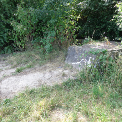 Aan de oostzijde van Fort Uitermeer gelegen BETONBLOK van GIETSTALEN KOEPELKAZEMAT TYPE G, bestaande uit een relatief laag, rechthoekig gewapend betonnen bouwwerk (ca. 7.00 x 6.50 x 2.20 m; b x d x h), met een afgeschuind gedeelte aan de frontzijde en aan de achterzijde een uitsparing in het beton om de niet meer aanwezige koepel te kunnen betreden. Het betonblok van de Gietstalen Koepelkazemat type G ligt aan de oostzijde van de Kreugerlaan (de oude omleidingsweg), in het restant van de fortwal.