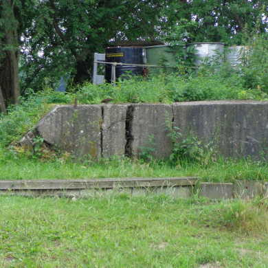Het betreft hier een onderdeel uit de periode 1939-1940, namelijk een gewapend betonnen blok als restant van een standaard gietstalen koepelkazemat.