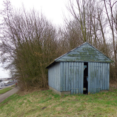Het betreft hier een onderdeel uit het interbellum, namelijk een houten berging uit omstreeks 1935