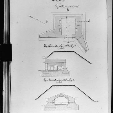 REMISE C / BOMVRIJ GEBOUW als een door een aarden dekking tegen inslagen van projectielen beveiligd onderkomen voor materieel. Met de toename van de draagwijdte van het geschut, de kracht van de inslagen van projectielen en de explosieve kracht van (brisant)granaten werd het steeds moeilijker weerstand te bieden tegen beschietingen. Verzwaring van metselwerk, toepassing van schokabsorberende metselsystemen (onder meer door middel van bogen), flauwe hellingshoeken en gebogen of juist puntige vormen, gebruik van beton - en later van gewapend beton - in steeds zwaardere uitvoering, was een van de manieren om de vestingwerken bestand te houden tegen toenemende aanvalskracht. Bovendien was het aanbrengen van aarddekkingen een goed middel gebleken om de energie te absorberen of te dempen. Dit is de reden waarom vele gemetselde of betonnen werken van een aardlaag of een frontbescherming van zand of aarde zijn voorzien. Afhankelijk van de periode van ontstaan - en daarmee van de te verwachten inslagkracht van projectielen - werd van 'bomvrije gebouwen' gesproken, wanneer ze bestand te zijn werden geacht tegen een van tevoren bepaald aantal inslagen van zwaar kaliber.
