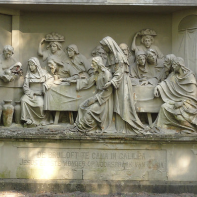 RELIEF BRUILOFT TE KANA, rechts vooraan in het park gelegen.