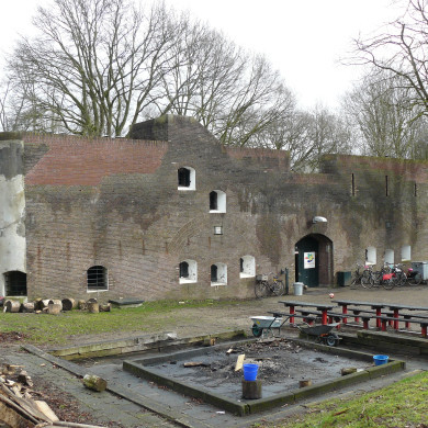 Het betreft hier een onderdeel van rond 1850, deels aangepast rond 1870 - als voorbeeld van een aardgedekt, bakstenen, bomvrij bouwwerk.
