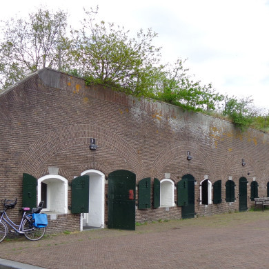 Het betreft hier een onderdeel uit 1874, als voorbeeld van een aardgedekt, bakstenen, bomvrij bouwwerk.