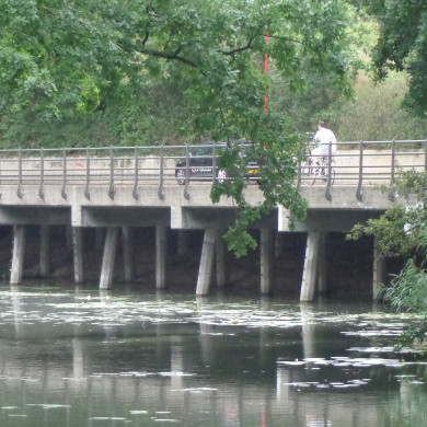 BETONNEN BRUG in het Houtensepad bij Lunet III ten westen van het werk en gelegen binnen de als zodanig op de kaart aangeduide Militaire Landsgrond. De iets gekromde betonnen brug rust op tientallen, schuin ten opzichte van elkaar geheide, vierkante betonnen palen die op meerdere plaatsen dwars op de lengte van de brug met elkaar zijn verbonden door betonnen liggers. De totale lengte bedraagt circa 70 m - waarvan ongeveer 30 m recht en aan noord- en zuidzijden circa 20 m lange, licht gekromde aanbruggen. De aanbruggen zijn van het middelste, rechte bruggedeelte gescheiden door in het wegdek waarneembare naden. Aan de oostzijde van de brug bevindt zich een verhoogd trottoir dat over de gehele lengte wordt begeleid door een ijzeren leuning; aan de westzijde grenst de brug tegenwoordig dicht aan de Waterlinieweg.