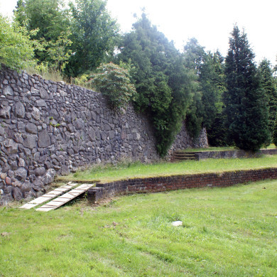 Openluchtcomplex van het Nationaal Tehuis van de NSB, ook bekend als de muur van Mussert, bestaande uit centrale toegangsweg met komvormig hoofdterrein als open ruimte gelegen tussen aangelegde, deels opgemetselde taludswanden met geïntegreerde toiletgroepen en met hoofdpodium op de zuidwand bestaande uit concaaf gebogen muren met geïntegreerde verblijfruimtes, bordes en drie convex geboogde vaandelterrassen met terrasmuurtjes en trapopgangen.