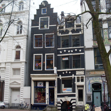 Winkelpand (1885, door H.P.Berlage en Tj.Sanders) in neo-Venetiaanse renaissancestijl, met typische 19e eeuwse, door een torentje bekroonde hoekerker.