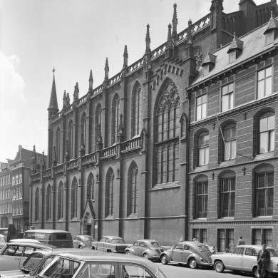 Parochiekerk van de H. Dominicus ("Stadhuis van Hoorn"). Driebeukige kruisbasiliek, 1884-1893, van belang als geheel op zichzelf staand verschijnsel in de tweede periode van het oeuvre van P.J.H.Cuypers. Uitwendige versiering met balustraden en pinakels, onvoltooide toren aan de ingangsgevel. Transeptarmen uitgevoerd als lage kapellen. Het zeer brede schip heeft ronde zuilen met bladkapitelen en wordt overdekt door een vlakke zoldering, gedragen door ijzeren balken op eveneens in ijzer uitgevoerde bogen tegen houten muurstijlen. Kruisribgewelven over zijbeuken, koor en dwarsarmen. Het rechthoekige presbyterium is door een hoge triomfboog naar het schip geopend en heeft in de sluitingswand een roosvenster. Oorspronkelijke, naar Cuyper's inzichten uitgevoerde meubilering, polychromie en beglazing.