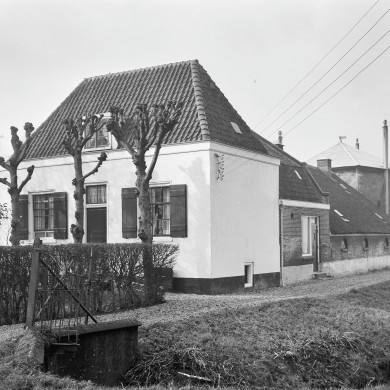 Boerderij met dwarsgeplaatst onderkelderd woongedeelte onder schilddak en bedrijfsgedeelte onder rieten dak (18e eeuws of ouder ?).