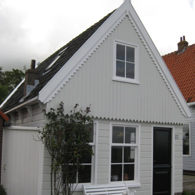 Houten dwarshuis, Uitwendig aspect hoofdzakelijk 19e eeuws.