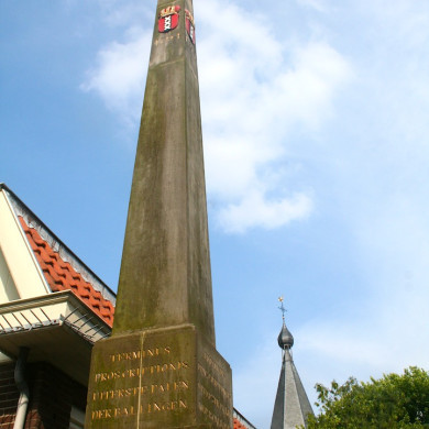 Banpaal in de vorm van een natuurstenen obelisk op bakstenen voet (1794).
