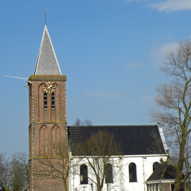 TOREN VAN DE NED. HERV. KERK. Gotische toren van 3 geledingen, zonder steunberen (XV). Moderne pyramidale spits.