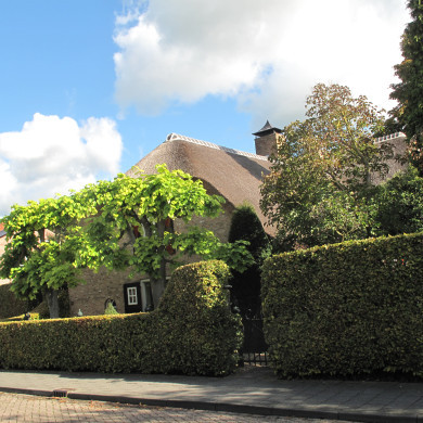 Boerderij uit het begin van de 19e eeuw. Dwars voor de stal gebouwd woongedeelte met lage verdieping en met riet gedekt schilddak. Vensters met luiken en zes- en negenruitsschuiframen. Op het erf een houten varkenskot met pannen zadeldakje.