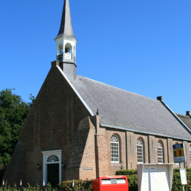 Ned. Herv. Kerk, bestaande uit een met riet gedekt rechthoekig koor uit de 14e eeuw, een blijkens een steen in 1664 herbouwd eenbeukig schip, dat hoger en breder is dan het koor en voorzien van rondboogvensters en vlakke pilasters, tegen de westkant van het schip een fragment van de middeleeuwse, van groot formaat baksteen opgetrokken kerk. Op het dak, tegen de westgevel, een dakruiter met spits. In het schip houten tongewelven, het koor mist de bebording. Gesneden eiken kansel uit 1631. Memoriebord uit 1806 voor de kerkmeester van den Beek. Mechanisch torenuurwerk, B. Eijsbouts, 1923, elektrisch opgewonden.