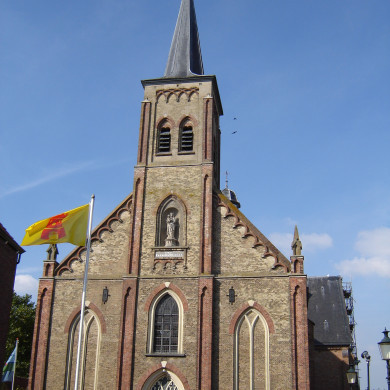 O.L.Vrouw. De kerk vanwege het schip met de toren, 1850-1851 door P.Soffers. Neogotische "Stuffenhalle" op pijlers, met gestucadoorde houten kruisribgewelven. Ingebouwde toren. Orgel van L. Hooghuys, gebouwd in 1861, afkomstig uit de R.K. Bavo van Groede.