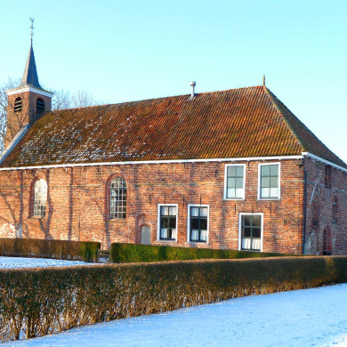 De Herv.Kerk is gevestigd in een overblijfsel van het Cistercienserklooster. Rechthoekige kerkruimte met twee rondbogige vensters aan elke zijde en korfbogige openingen aan de koorzijde, waarin een woning is aangebracht met omlijste ingang. Op een voetstuk in de tuin marmeren putto op een schaap gezeten. Klokkenstoel met klok van A.H. van Bergen, 1858, diam. 63 cm.