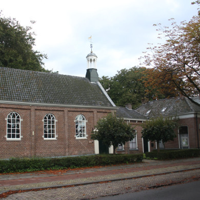 Doopsgezinde Kerk. Eenvoudig zaalgebouw, de muren geleed door spaarvelden waarin rondbogige gesloten vensters staan; eerste steen gelegd in 1804. In de kerk koperen kroon.