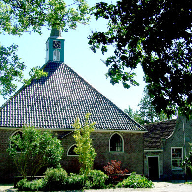 Door middel van een tussenlid met de N.H. Kerk verbonden bakstenen gebouwtje van een bouwlaag onder met blauwe pannen gedekt zadeldak tussen ingezwenkte tuitgevels met staafankers, in oorsprong bestemd tot schoolgebouw en vermoedelijk daterend uit de 18e eeuw.