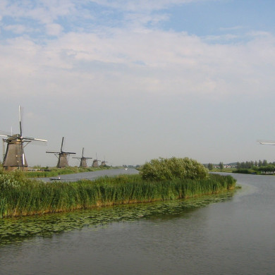 Molen nr 4 van de Waterschap de Overwaard. Achtkantige, houten boezemmolen op stenen voet, 1740.