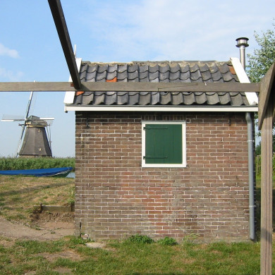 Molen nr 5 van de Waterschap de Overwaard. Achtkantige, houten boezemmolen op stenen voet, 1740.