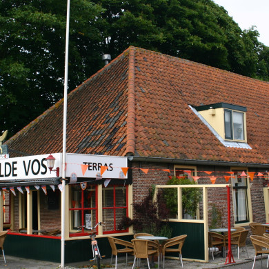 Herberg "De Vergulden Vos". Rechthoekig boerenhuis onder hoog, met pannen gedekt schilddak, in de huidige vorm eerste helft negentiende eeuw, doch blijkens het jaartal 1615 op het moderne huisteken, dat een vos voorstelt, van oudere oorsprong. Oudtijds een rechthuis.