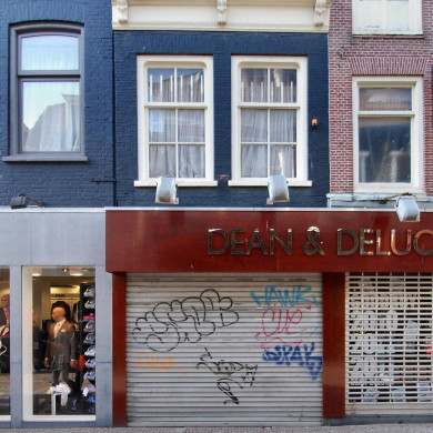 Pand met lijstgevel; dakkapel, negenruitsschuifvensters op de verdieping; winkelpui. XIX.