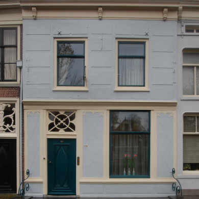 Pand met lijstgevel onder dwars zadeldak, de lijst voorzien van twee gesneden consoles. Dakkapel met wangstukken en segmentboogvormig fronton. Op de verdieping zesruitsvensters en op de beganegrond achtruitsvensters in empire-trant. Natuurstenen vensterdorpels.