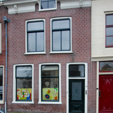 Pand met lijstgevel. Dakkapel. Negenruits schuifvensters op de verdieping. XIX.