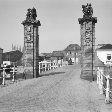 Schermerhek. Twee hardstenen pijlers van de in 1712 geplaatste hamei behorend bij de v.m. Scherperpoort. Elk der pijlers wordt bekroond door een gebeeldhouwde zandstenen groep, kinderen met een bok en een schaap, door Jacob Vennekool. IJzeren hekken.