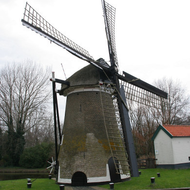 Poldermolen "De Eendracht" van de Eendrachtspolder. Ronde bovenkruier blijkens gedenksteen, gebouwd in 1771; baksteen, kap met riet gedekt.
