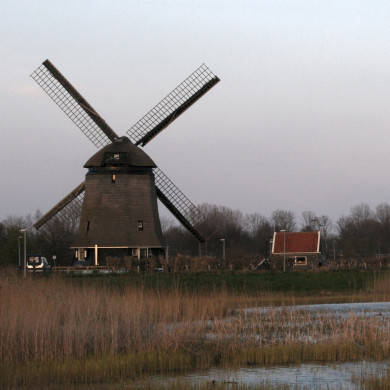 Strijkmolen De Zes Wielen van de v.m.Raaksmaatsboezem. Achtkante bovenkruier, gebouwd omstreeks 1630.