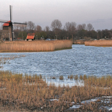 Strijkmolen De Zes Wielen van de v.m.Raaksmaatsboezem. Achtkante bovenkruier, gebouwd omstreeks 1630.